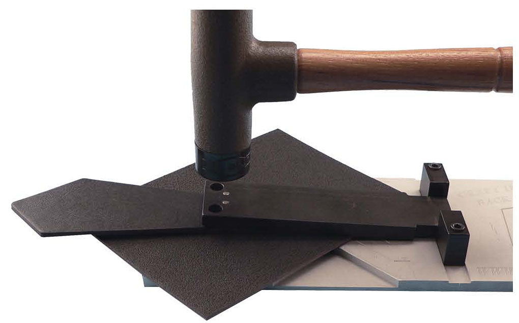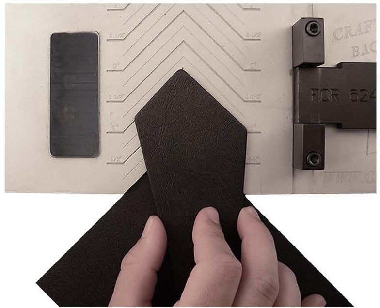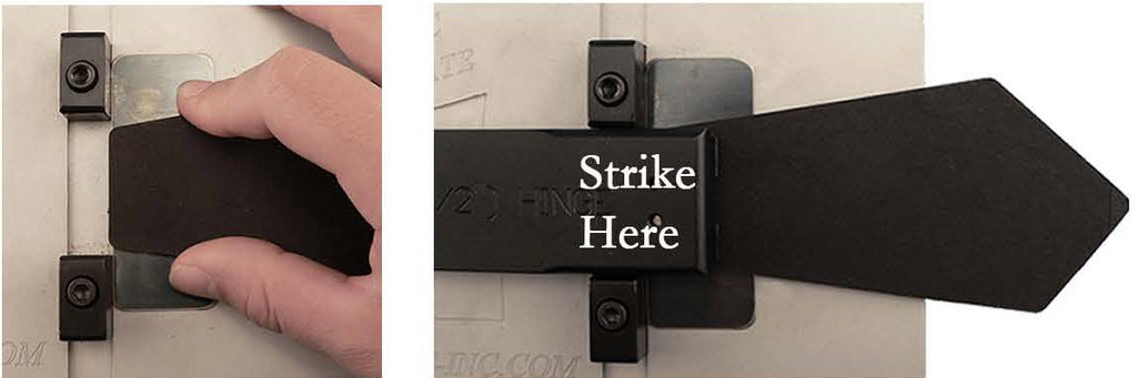 The Back Mate allows you to make your own easel backs in 4 easy steps. Insert the hinge into the applicator bar. Line the back of the strut up with the guide. Flip hinge applicator bar and strike with hammer to apply hinge.The built in scale allows for flush or up to a 2 drop. Place the back in the notch and align the strut on the desired setting. Holding the back and the strut together position over the striking area for final assembly. Flip hinge applicator bar and strike with hammer to apply.